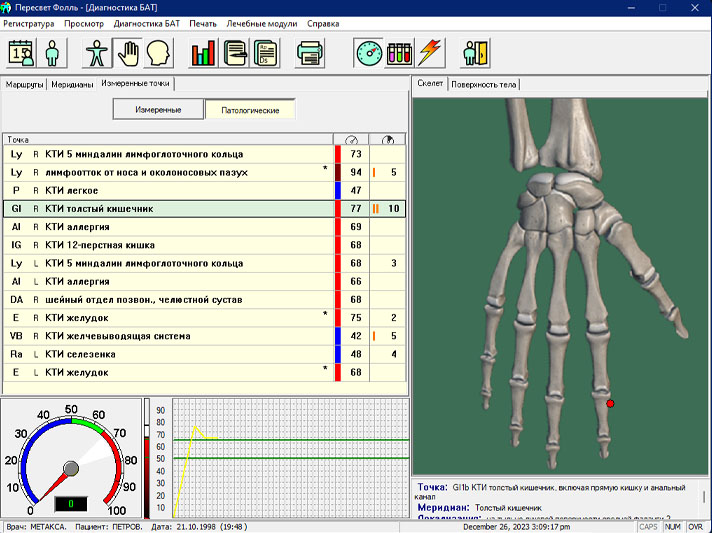 Это сопровождение и помощь на всех этапах применения методики Фолля: автоматический ввод данных в компьютер, разнообразный анализ результатов измерений, предположительные заболевания и комплексное лечение.